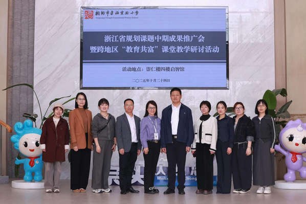 为深化课堂教学改革创新,加速教师专业成长进程,充分发挥省规划课题研究价值,加强跨地区交流合作,10月24日,中心联合桐乡市教研科研室主办的浙江省规划课题中期成果推广会、跨地区“教育共富”课堂教学研讨活动,在桐乡市崇福实验小学举行。中心副主任刘佳,桐乡市教研科研室教研员张赛儿,湖州市环渚学校书记、校长何晶晶,专职副书记黄东明,桐乡市崇福实验小学书记、校长李萍,湖州市环渚学校、桐乡市崇福实验小学教师代表,李萍嘉兴市名师工作室全体成员,参加此次活动。