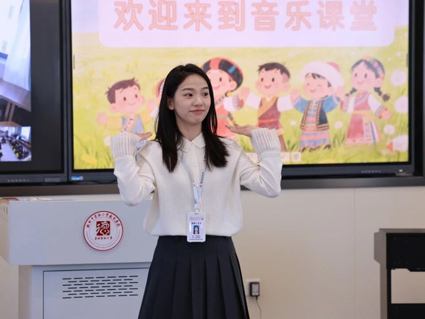 上午,邵逸佳老师带来的一年级音乐课《同唱一首歌》开启活动序幕。邵老师将学校特色运河童玩——跳房子与音乐结合,用音乐游戏带动了学生的积极性。同时通过设置开门密码的情境,将音乐、舞蹈与民族文化结合,既带领孩子们感受音乐之美,也让孩子们得到了爱国主义的熏陶。