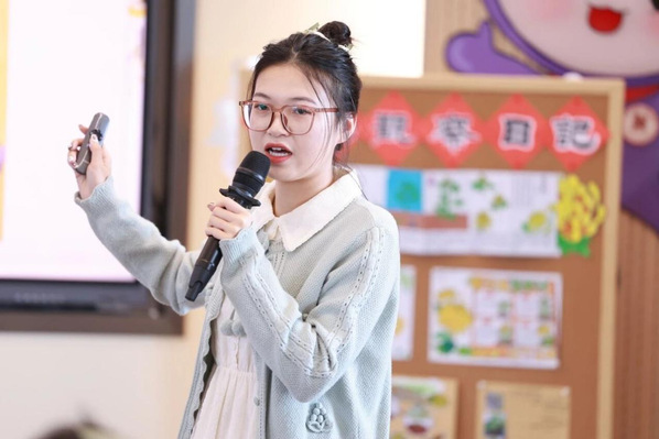 钱颖佳老师执教三年级语文课《香港,璀璨的明珠》。在文本研读的过程中,钱老师从带领学生学,到学生“独学”,最后小组“合学”,既落实了教学重难点,带领学生领略了香港的独特魅力,也让学生的综合能力得到了锻炼提升。最令人眼前一亮的是,钱老师融入了AI技术,让孩子们能以“对话”的形式为奶奶介绍香港,让语文课堂充满“智”与“趣”。